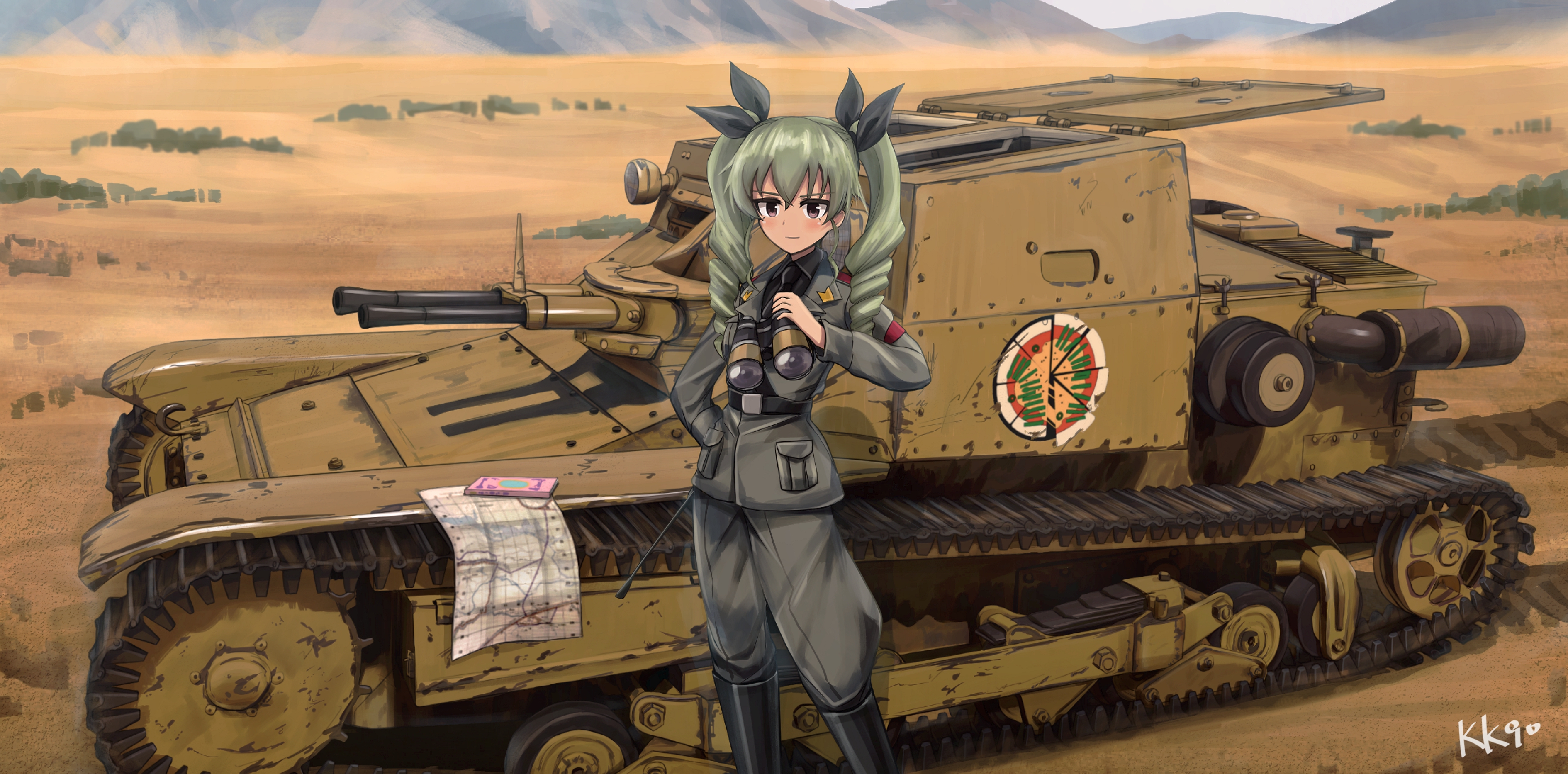 > Пик 4 Kohima, 1944 ЧатГПТ говорит, что у тянки на шляпе эмблема Australian Army Ordnance Corps, но чёт хз. Совсем другая гуглится. Автор: https://www.pixiv.net/en/users/78305394