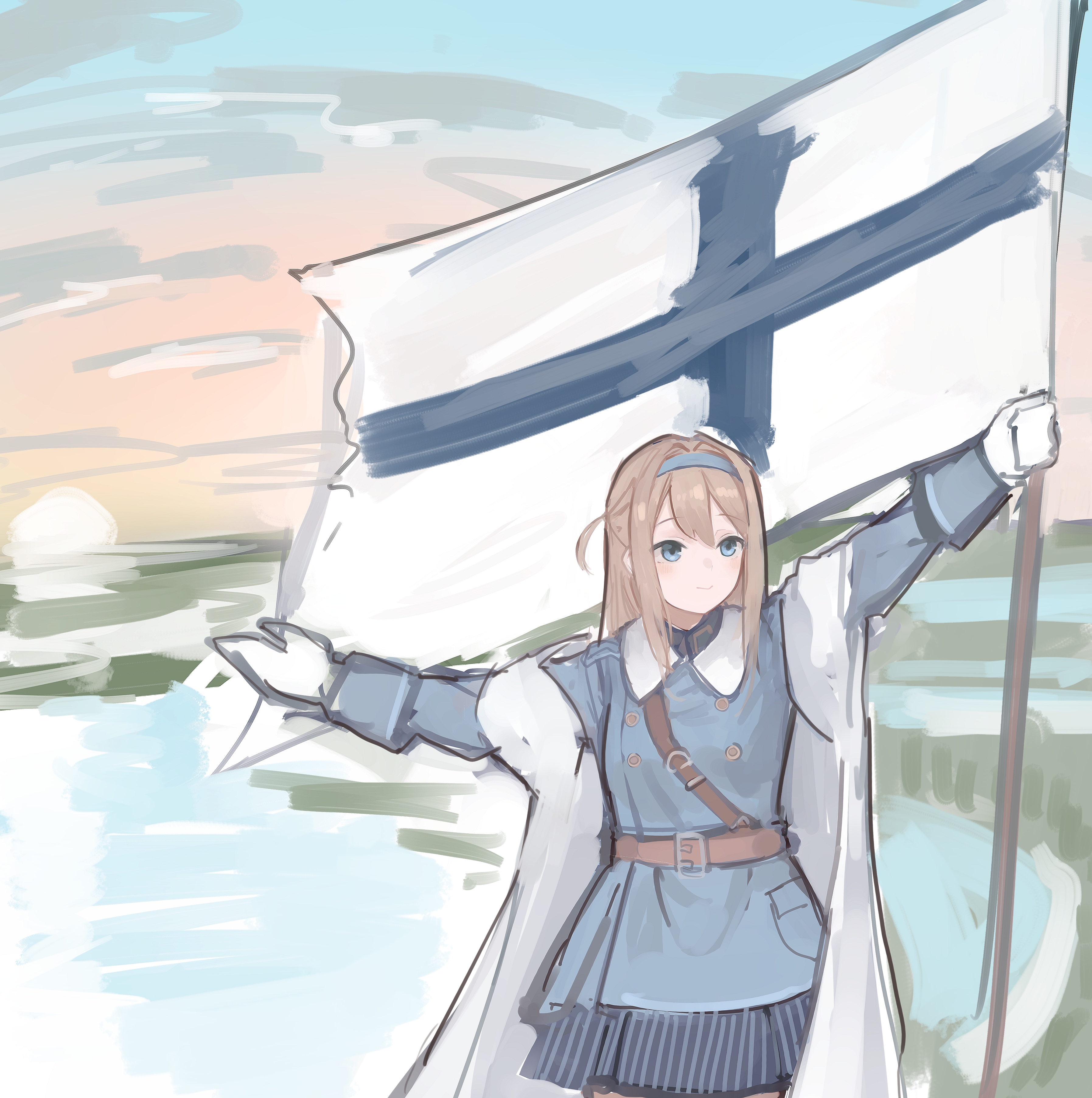 > Пик 4 Тяночка в американской форме времён войны за независимость стреляет из мушкета. Фон картинки отсылает на битву при Банкер-Хилле. Автор: https://www.pixiv.net/en/users/78305394