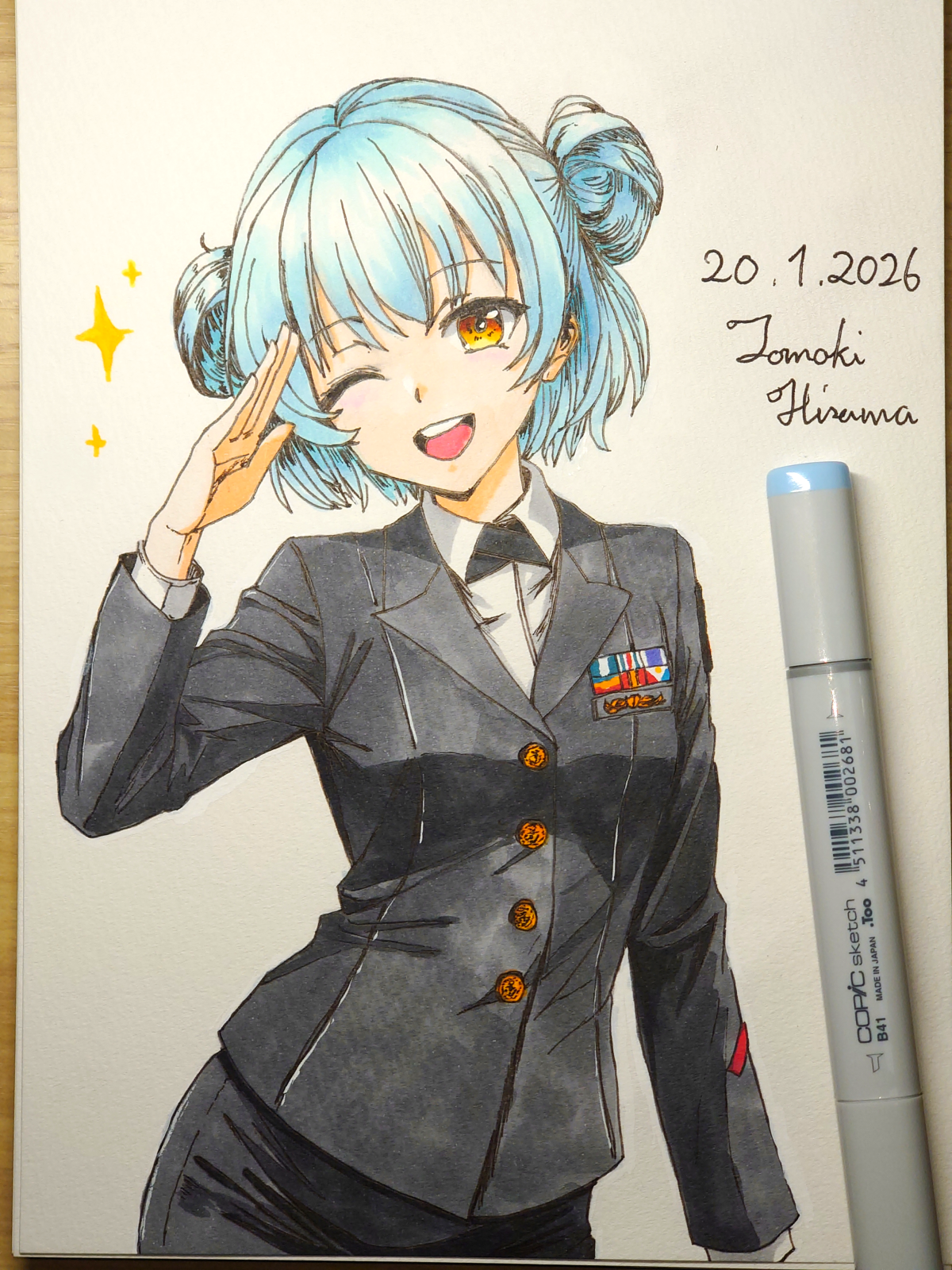 > Пик 2 Сигурэ из KanColle в форме офицера морских сил самообороны. То ли лейтенант, то ли мичман (одна полоска на рукаве, которая отличается лишь толщиной). Склоняюсь, что это всё же мичман. Тот же автор (его рисунки на бумаге лучше, чем в цифре, однако).