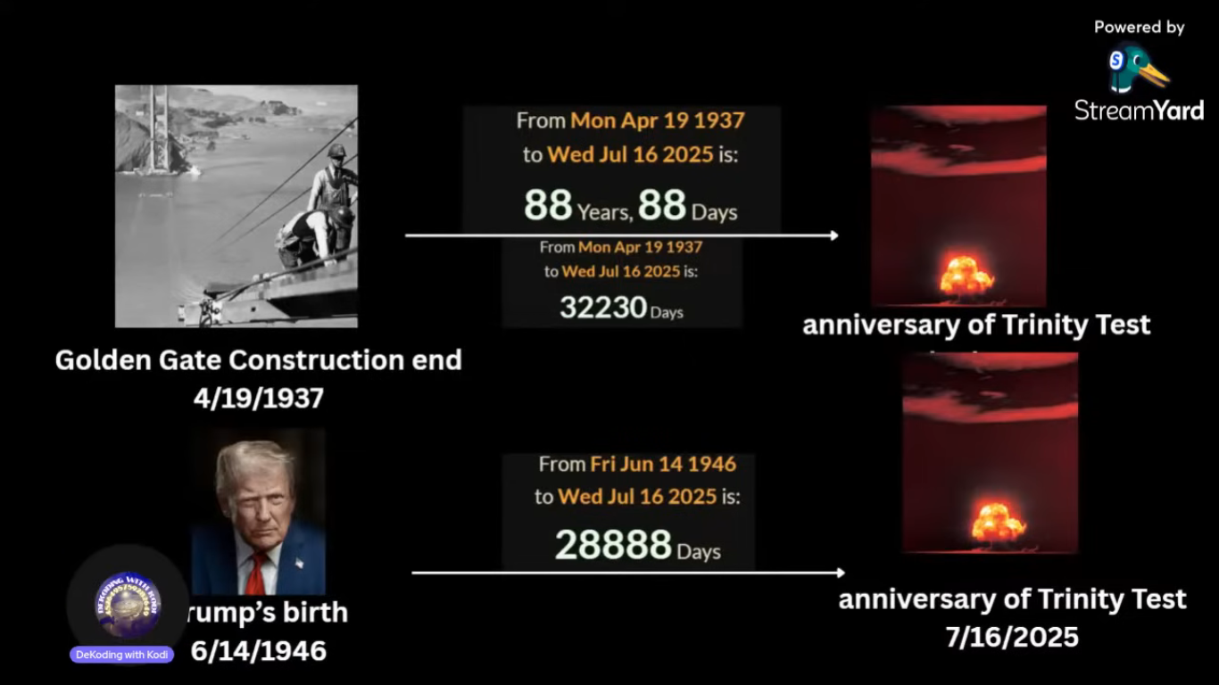 16.3.2025 годовщина открытия моста+3мес22 включительно=7 июля 2025 16.3.2025+119 дней=13 июля 2025 годовщина покушения на Трампа