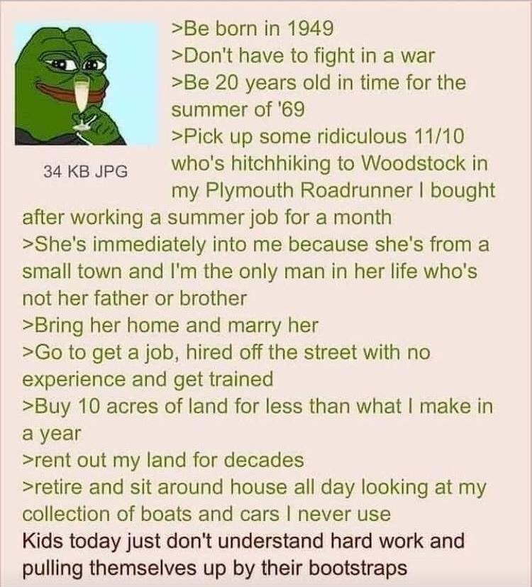 >>572447 (OP) Не знаю, по теме или нет, но думаю все такую риторику видели, на дваче, и не только. Может быть так что всякие 30летние мудилы пишут про события 10летней давности, как будто им не 30 а 70, потому что в окружении таких мудил такая средняя продолжительность жизни и есть?